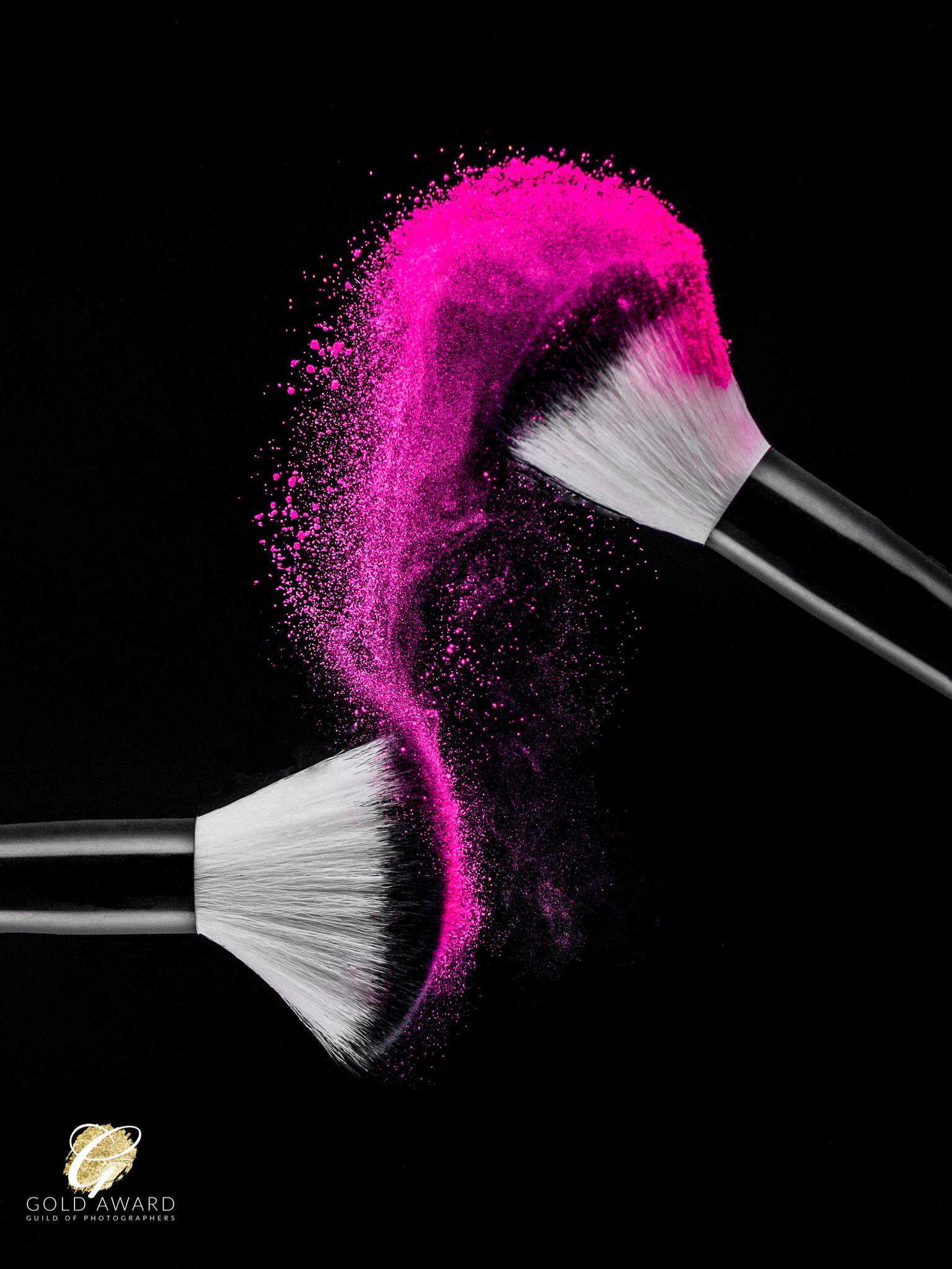 Moment in time image of powder swept across brushes